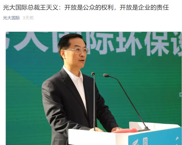 最后,我代表光大國際再次對政府與民眾對我們的信任表示由衷的感謝。我們深知,信任是一份責任也是一份力量。光大國際一定不負眾望,擔責有為,與更多的環(huán)保同行一起,為行業(yè)透明公開、健康發(fā)展起到示范和推進作用,成為環(huán)境質(zhì)量改善的捍衛(wèi)者,成為綠色可持續(xù)發(fā)展的排頭兵。