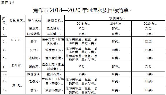 2.焦作市2018—2020年河流水質(zhì)目標(biāo)清單