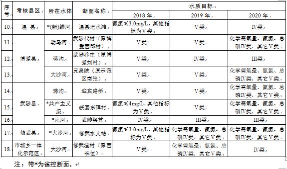 8.推進(jìn)水污染綜合整治及水生態(tài)保護(hù)修復(fù)。加強(qiáng)河湖水污染綜合整治及水生態(tài)保護(hù)、修復(fù)等。針對(duì)沁河(武陟渠首斷面),相關(guān)縣(市)要制定實(shí)施河流水質(zhì)提升專項(xiàng)方案,確保到2019年斷面水質(zhì)達(dá)到或好于Ⅲ類(lèi);針對(duì)蟒河、共產(chǎn)主義渠、大沙河等污染較重河流(水體),相關(guān)縣(市)要制定實(shí)施整治方案,確保到2019年蟒河溫縣汜水灘、共產(chǎn)主義渠獲嘉東碑村、大沙河修武水文站斷面水質(zhì)達(dá)到或好于Ⅴ類(lèi),到2020年蟒河溫縣汜水灘斷面水質(zhì)達(dá)到或好于Ⅳ類(lèi)。(市住房城鄉(xiāng)建設(shè)局、水利局、環(huán)境保護(hù)局牽頭,市發(fā)展改革委、財(cái)政局、林業(yè)局參與,各縣(市)區(qū)政府、市城鄉(xiāng)一體化示范區(qū)管委會(huì)負(fù)責(zé)落實(shí))