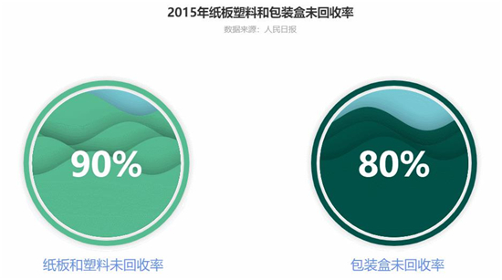 與高消耗量形成鮮明對比的是極低的回收率。2015年,紙板和塑料的實際未回收率大于90%,包裝物總體未回收率大于80%。
