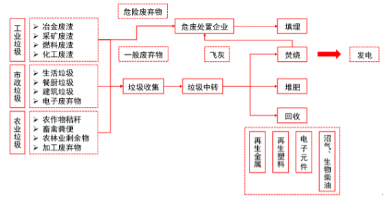 隨著我國城市化程度的不斷提高,城市人口快速增加,生活垃圾等固廢處理設(shè)施建設(shè)存在巨大增長空間。城市生活垃圾處理是指防止城市生活垃圾污染環(huán)境并充分利用城市生活垃圾的活動和措施,廣義上包括收集、運輸、回收、處理和處置城市生活垃圾并在上述過程中進行監(jiān)測和管理活動。城市生活垃圾在環(huán)衛(wèi)局等主管部門統(tǒng)一調(diào)度下運輸至垃圾中轉(zhuǎn)站,在中轉(zhuǎn)站中經(jīng)壓縮處理后通過水路、陸路等方式運送至生活垃圾處理場(廠)進行處置及資源化利用,包括廢品回收及再生利用、生活垃圾堆肥、填埋、焚燒等。