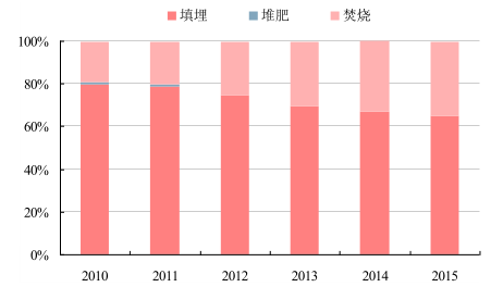 2010–2015年我國城市生活垃圾處理方式構(gòu)成