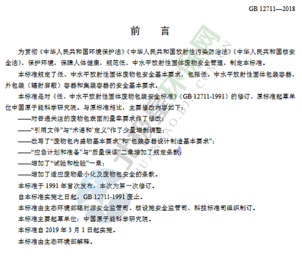 一、低、中水平放射性固體廢物包安全標(biāo)準(zhǔn)(GB 12711-2018);