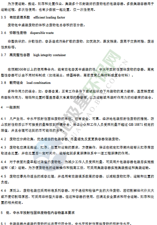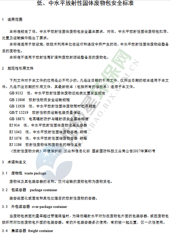 低、中水平放射性固體廢物包安全標(biāo)準(zhǔn)