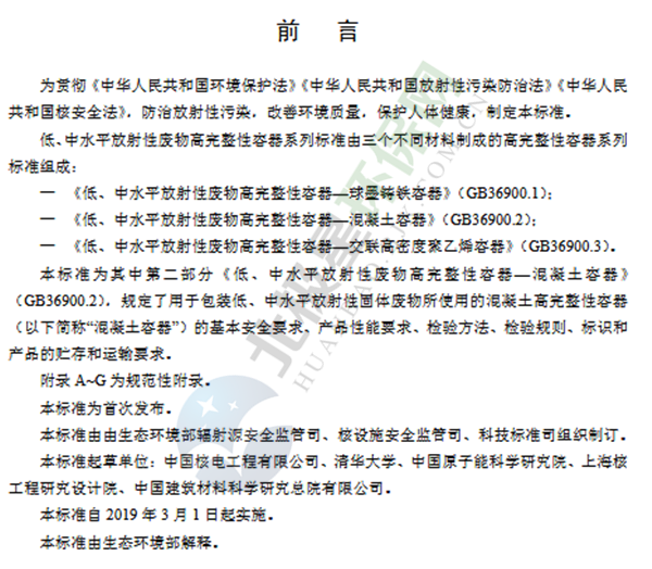上述標(biāo)準(zhǔn)自2019年3月1日起實施,自實施之日起,《低、中水平放射性固體廢物包安全標(biāo)準(zhǔn)》(GB 12711-1991)廢止。