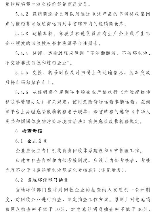 在試點市范圍內(nèi),廢鉛蓄電池在收集網(wǎng)點和經(jīng)銷商倉庫之間轉(zhuǎn)移,可使用鉛蓄電池貨物運輸車輛轉(zhuǎn)運,廢鉛蓄電池自經(jīng)銷商轉(zhuǎn)運至持危險廢物許可證的再生鉛企業(yè)、工業(yè)企業(yè)產(chǎn)生的廢鉛蓄電池集中轉(zhuǎn)運的,按照危險廢物進行管理,運行危險廢物轉(zhuǎn)移聯(lián)單,遵守危險貨物運輸管理有關(guān)規(guī)定。跨省轉(zhuǎn)移廢鉛蓄電池的,應當經(jīng)移出地和移入地省級環(huán)保部門批準。
