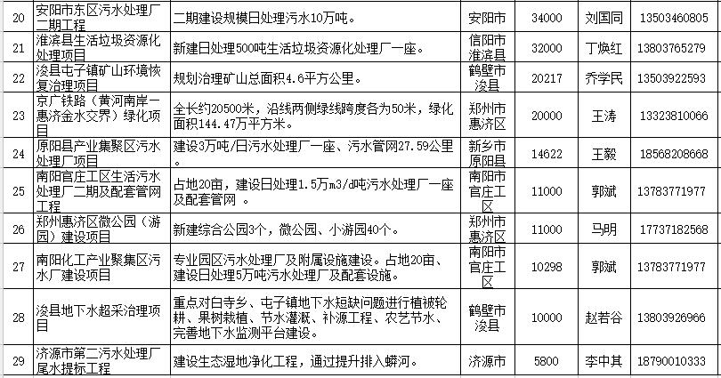 河南省2018年擬向民間資本推介項目清單(涉環(huán)保部分)