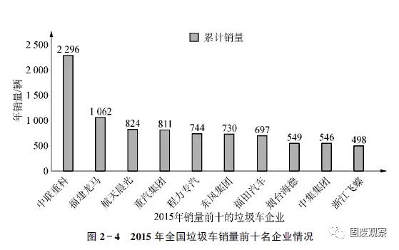 2015年,全國銷量前10企業(yè)合計(jì)完成垃圾車銷售8757輛,在全國垃圾車總銷量中的占有份額達(dá)到53.44%,同比提升6.89%。
