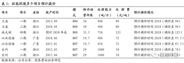 2)PPP降溫后,行業(yè)渡過低價競爭階段,新項目回報率提升,老項目處理費提價。