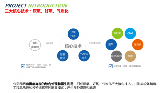 通過5年的潛心、實(shí)干積累,使匯君環(huán)能擁有了自己的一套核心技術(shù)模式,即厭氧與好氧相結(jié)合的工藝模式,保證每一個(gè)項(xiàng)目達(dá)到效果最優(yōu)化。厭氧路線,利用公司厭氧專利核心設(shè)備,將有機(jī)廢棄物轉(zhuǎn)化成沼氣,用來發(fā)電、脫碳制壓縮生物天然氣和供熱;好氧路線,利用智能化高溫好氧設(shè)備,直接產(chǎn)生符合國家標(biāo)準(zhǔn)的525有機(jī)肥,根據(jù)肥料客戶需求,還會(huì)再添加復(fù)配一些菌種,生產(chǎn)菌機(jī)肥。兩條核心技術(shù)路線綜合運(yùn)用發(fā)展的基本策略,使公司在行業(yè)內(nèi)奠定了厚實(shí)的基礎(chǔ),區(qū)域整體規(guī)劃綜合處治理,實(shí)現(xiàn)了有機(jī)廢棄物資源化和肥料化相結(jié)合的匯君模式。