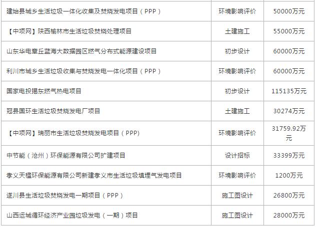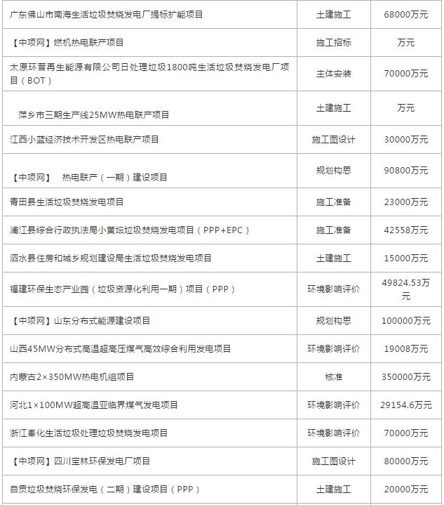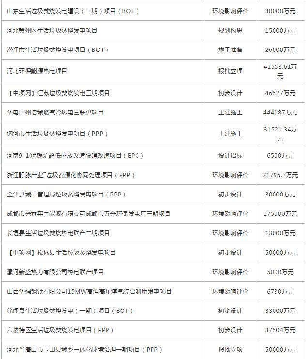 11月份全國(guó)擬在建垃圾發(fā)電項(xiàng)目