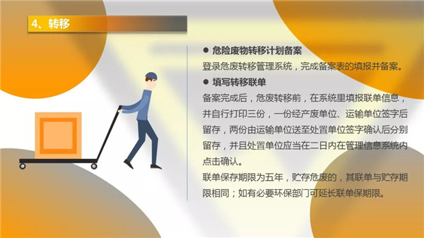 7) 企業(yè)需要有清晰、詳細(xì)的臺(tái)賬;五聯(lián)單執(zhí)行情況,企業(yè)需要有齊全的轉(zhuǎn)移手續(xù)對(duì)危險(xiǎn)廢物進(jìn)行交換轉(zhuǎn)移。