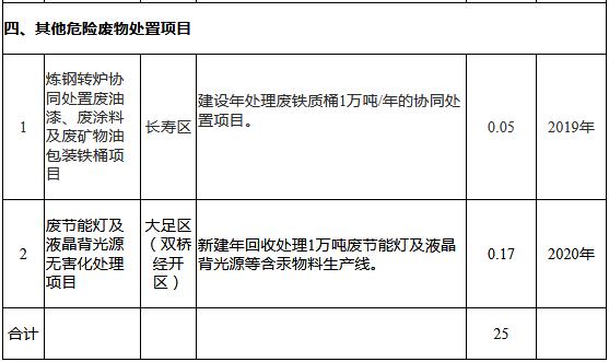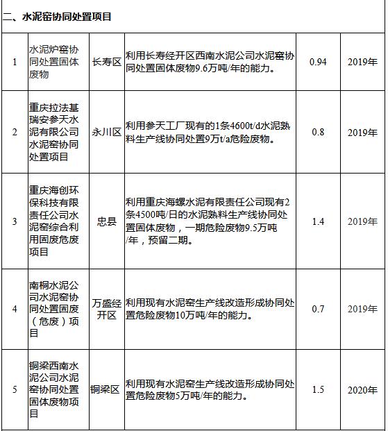 重慶市危險(xiǎn)廢物集中處置設(shè)施建設(shè)布局規(guī)劃項(xiàng)目一覽表(2018-2022年)