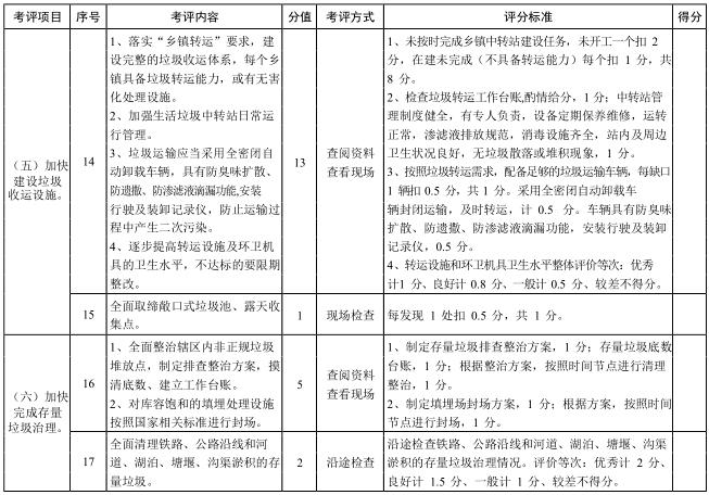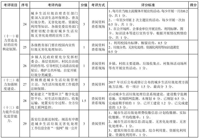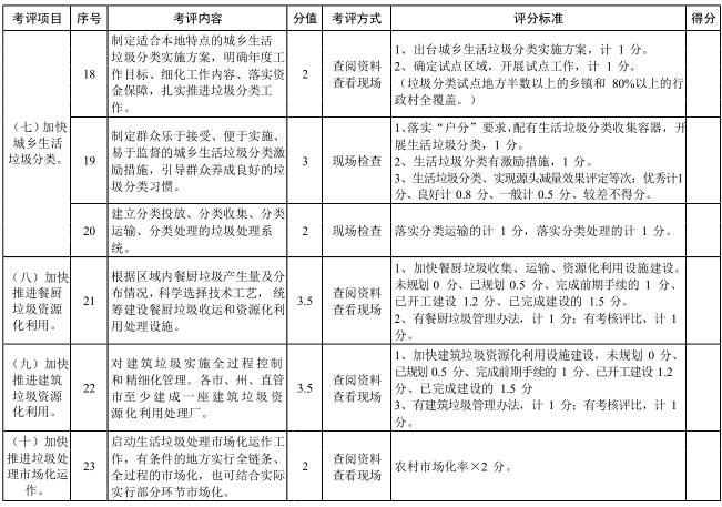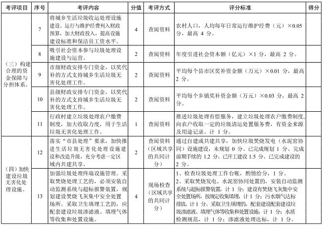 (三)加強結(jié)果運用。省指揮部辦公室將定期把考評完成情況向省委省政府匯報,對重點問題向各地發(fā)通報或督辦函。考評結(jié)果將作為每年城鄉(xiāng)生活垃圾無害化處理以獎代補資金安排的重要依據(jù)。