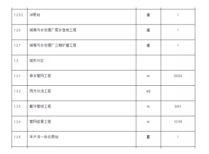 注:存量資產(chǎn)待本項目建成且由項目實施機構(gòu)完成評估后統(tǒng)一委托項目公司運營,存量資產(chǎn)包括:污水管470.38km,雨污合流管道124.41km,泵站23座(以項目實施機構(gòu)最終確認的清單為準)。