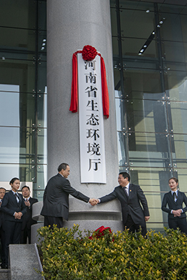 河南省政府副秘書長馮先志、省生態(tài)環(huán)境廳領(lǐng)導(dǎo)班子成員、歷屆離任廳級領(lǐng)導(dǎo)代表、省政府參事及離退休老干部代表、省生態(tài)環(huán)境廳全體干部職工參加儀式,共同見證了這一我省生態(tài)環(huán)境保護(hù)史上具有里程碑意義的重要時刻。
