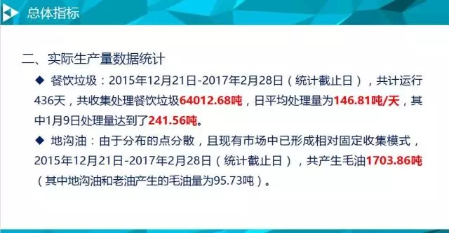 常州市餐廚廢棄物綜合處置一期工程于2014年11月8日正式建設,包括收集、運輸、處理和信息化監(jiān)管等內(nèi)容,是江蘇省第一個由省級行政主管部門審批的餐廚廢棄物處理工程。采用目前國內(nèi)比較先進的技術(shù)路線,其中食物殘余采用“預處理+厭氧消化+沼氣發(fā)電”處理工藝,最終資源化產(chǎn)品主要為電能和生物柴油,工程于2015年12月21日投入試運行,至2017年2月28日,共計運行436天,共收集處理餐廚廢棄物64012.68噸,日平均處理量為146.81噸,其中,最多日處理量達241.56噸。為確保常州人“舌尖上的安全”,二期餐廚廢棄物處理系統(tǒng)將于2019年建成。