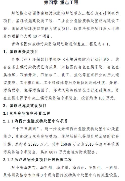 青海省固體廢物污染防治規(guī)劃(2018 年~2022 年)(征求意見稿)