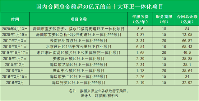 相關(guān)閱讀:周末薦讀 | “史上最大環(huán)衛(wèi)PPP項(xiàng)目”招標(biāo):門檻高,要求嚴(yán),不裁員企業(yè)還加分! 進(jìn)入2020年,環(huán)衛(wèi)行業(yè)的“巨額訂單”又來了。 新年前四月,深圳寶安區(qū)接連放出兩個(gè)環(huán)衛(wèi)一體化項(xiàng)目,首年服務(wù)經(jīng)費(fèi)總計(jì)高達(dá)10.47億元/年,合同總金額累計(jì)超150...