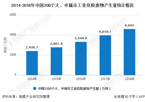 工業(yè)生產(chǎn)過(guò)程排放危險(xiǎn)廢物日益增多 根據(jù)《中華人民共和國(guó)固體廢物污染環(huán)境防治法》的規(guī)定,危險(xiǎn)廢物是指列入國(guó)家危險(xiǎn)廢物名錄或者根據(jù)國(guó)家規(guī)定的危險(xiǎn)廢物鑒別標(biāo)準(zhǔn)和鑒別方法認(rèn)定的具有危險(xiǎn)特性的固體廢物。隨著工業(yè)的發(fā)展,工業(yè)生產(chǎn)過(guò)程排放的危險(xiǎn)廢物日益增多。 1、中國(guó)工業(yè)危險(xiǎn)廢物產(chǎn)生量逐年攀升 山東煙臺(tái)產(chǎn)量最多 ...