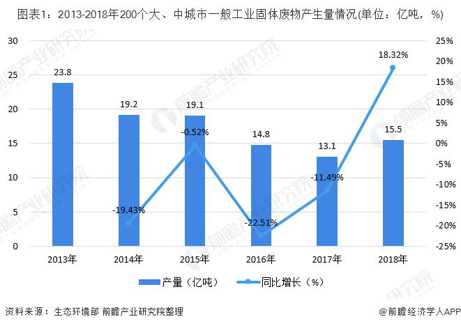 一般工業(yè)固廢的產(chǎn)量占比在固廢廢物總量八成以上,一般工業(yè)固廢的產(chǎn)量趨勢(shì)幾乎決定著固廢的整體走向。近年來(lái),一般工業(yè)固廢的貯存待處理量上漲較快,截至2018年底200個(gè)大、中城市一般工業(yè)固體廢物貯存量達(dá)到8.1億噸。 一般工業(yè)固體廢棄物產(chǎn)量有所回升 工業(yè)固廢處理是我國(guó)固廢處理行業(yè)的重要組成部分,工業(yè)固廢分...