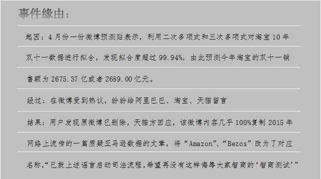 這邊天貓剛剛于2019年11月12日零點(diǎn)公開了雙十一成交額“2684億元”的好成績,那邊微博熱搜沒有一點(diǎn)點(diǎn)防備就被一個4月份的預(yù)測貼占據(jù)了,引發(fā)了轟動。 你說跟環(huán)保沒關(guān)系? 編者也以為跟環(huán)保沒關(guān)系,但是仔細(xì)一看天貓這篇回應(yīng)貼,除了出現(xiàn)了“周而復(fù)始的陳舊謠言&rdq...