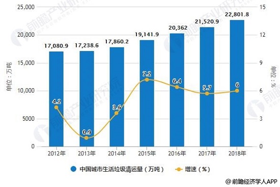 一、生活垃圾產(chǎn)量保持5%的增速 隨著垃圾分類在全國各個地區(qū)的推進(jìn),垃圾處理行業(yè)也愈發(fā)壯大。根據(jù)國家統(tǒng)計局和OECD數(shù)據(jù)顯示,近幾年我國生活垃圾產(chǎn)量保持5%左右的增長,2018年全國生活垃圾清運(yùn)量達(dá)到2.28億噸,當(dāng)前中國已超過美國,成為全球產(chǎn)生垃圾最多的國家。在過去全國生活垃圾清運(yùn)量始終高于無害化處...