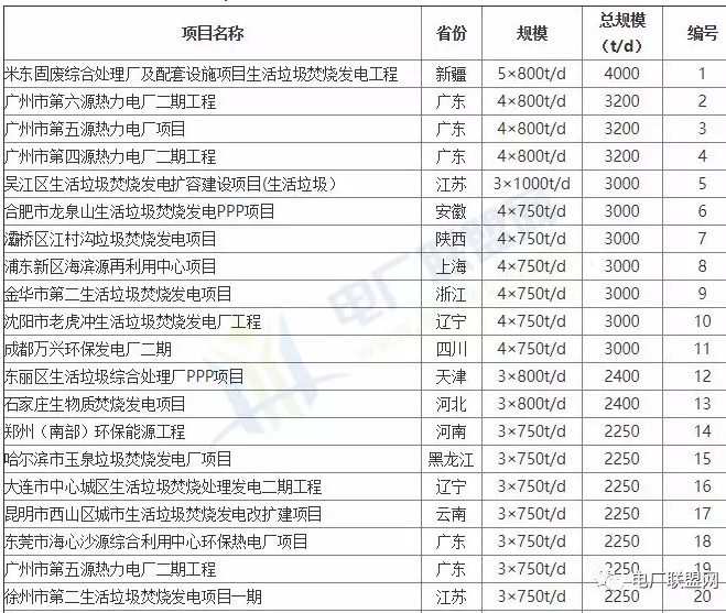 2019年中國(guó)100個(gè)擬在建大型生活垃圾焚燒發(fā)電廠(chǎng)項(xiàng)目一覽,2019年全國(guó)約600個(gè)大中小型生活垃圾焚燒發(fā)電廠(chǎng)項(xiàng)目擬在建,是垃圾焚燒發(fā)電項(xiàng)目最多的一年,單個(gè)項(xiàng)目投資約2億~20億,有關(guān)項(xiàng)目詳見(jiàn)項(xiàng)目資料匯編,附2019垃圾焚燒發(fā)電廠(chǎng)項(xiàng)目供應(yīng)商名錄。2019中國(guó)垃圾焚燒發(fā)電項(xiàng)目供應(yīng)商名錄: