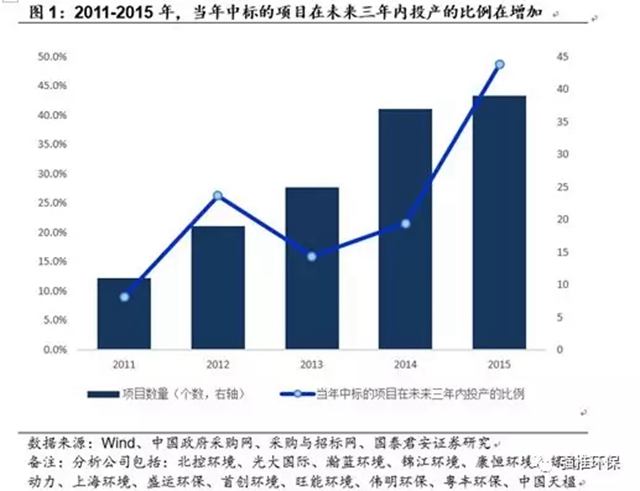 上市公司垃圾焚燒項(xiàng)目開工加速,投產(chǎn)周期縮短 1)在對(duì)上市公司所有在手垃圾焚燒項(xiàng)目進(jìn)行統(tǒng)計(jì)的基礎(chǔ)上,我們對(duì)項(xiàng)目從中標(biāo)/簽約到投產(chǎn)的時(shí)間(投產(chǎn)周期)做了進(jìn)一步分析。我們選取的樣本包括北控環(huán)境、光大國(guó)際、瀚藍(lán)環(huán)境、錦江環(huán)境、康恒環(huán)境、綠色動(dòng)力、上海環(huán)境、盛運(yùn)環(huán)保、首創(chuàng)環(huán)境、旺能環(huán)境、偉明環(huán)保、粵豐環(huán)保、中...