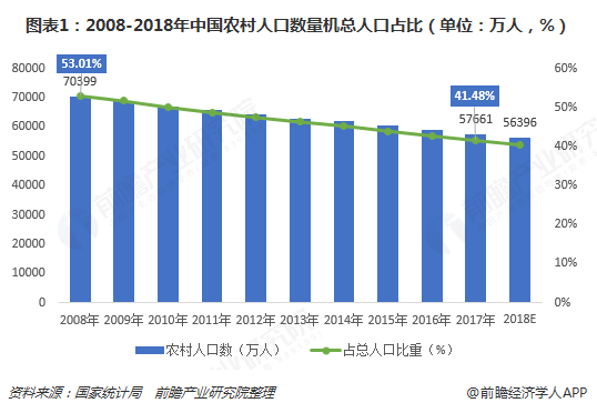 近年來,隨著我國(guó)城市化進(jìn)程的不斷推進(jìn),我國(guó)城鎮(zhèn)人口持續(xù)增長(zhǎng),而農(nóng)村人口不斷減少,2008年我國(guó)農(nóng)村人口數(shù)量為70399萬人,占全國(guó)人口總數(shù)的50%以上,隨著城市化進(jìn)程的推進(jìn),農(nóng)村大量人口向城市轉(zhuǎn)移,至2017年,農(nóng)村人口數(shù)量下降至57661萬人,當(dāng)年全國(guó)大陸總?cè)丝?39008萬人,農(nóng)村人口數(shù)占比下降...