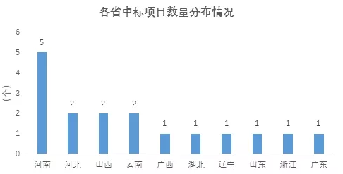 來自全國(guó)各級(jí)政府采購(gòu)網(wǎng)及公共資源交易平臺(tái)的公開消息,2019年1月社會(huì)資本共中標(biāo)17個(gè)固廢PPP項(xiàng)目,投資額總計(jì)超過52億元。本文將從中標(biāo)項(xiàng)目的省份分布、細(xì)分領(lǐng)域分布、社會(huì)資本及典型項(xiàng)目等角度分別展開簡(jiǎn)要分析。 河南省拔得頭籌 本月固廢項(xiàng)目分布在全國(guó)10個(gè)省份,僅河南省中標(biāo)項(xiàng)目數(shù)量達(dá)5個(gè),河北、山西...