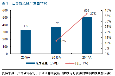 1. 省特點(diǎn):增長(zhǎng)快、轉(zhuǎn)入省、供需錯(cuò)配1.1. 產(chǎn)量增長(zhǎng)快:近兩年危廢產(chǎn)生量同比增速超過(guò)30%2015年以前,江蘇省危廢產(chǎn)生量增速約在10%左右,隨著環(huán)保督查嚴(yán)格執(zhí)法的推進(jìn),2016及2017年,年平均增速上升至30%以上。其中2017年,江蘇全省危廢產(chǎn)生量442萬(wàn)噸,較2016年同比增長(zhǎng)31%。2...