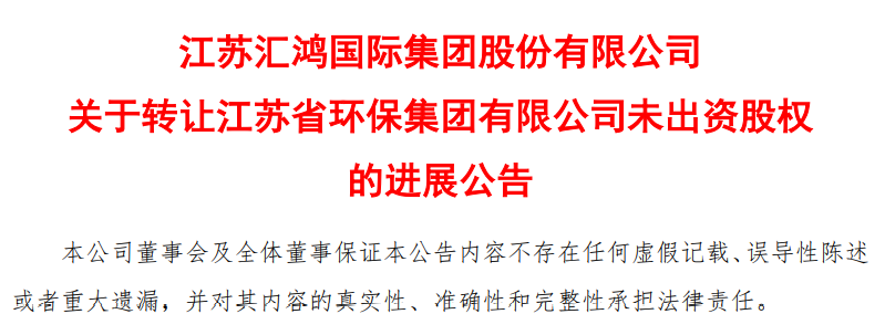 近日,匯鴻集團(tuán)發(fā)布公告稱,同意匯鴻集團(tuán)以非公開(kāi)協(xié)議方式轉(zhuǎn)讓持有的江蘇省環(huán)保集團(tuán)有限公司(以下簡(jiǎn)稱“省環(huán)保集團(tuán)”)30.62%的公司股權(quán),即對(duì)應(yīng)的公司未繳納的15.6億元注冊(cè)資本出資額。其中,5億元出資份額對(duì)應(yīng)的9.81%股權(quán)轉(zhuǎn)讓給江蘇省國(guó)金資本運(yùn)營(yíng)集團(tuán)有限公司(以下簡(jiǎn)稱 “國(guó)金集團(tuán)”或“受讓方”);...