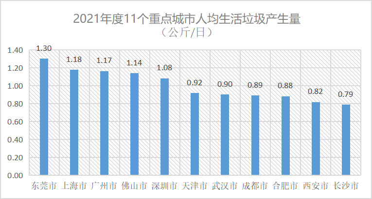 近日,11個(gè)重點(diǎn)城市《2021年固體廢物污染環(huán)境防治信息公告》陸續(xù)發(fā)布。數(shù)據(jù)統(tǒng)計(jì)顯示,2021年度11個(gè)重點(diǎn)城市生活垃圾產(chǎn)生總量達(dá)到6064.69萬(wàn)噸,人均每天生活垃圾產(chǎn)生量突破1公斤(1.0073公斤/人/日)。2021年度,11個(gè)重點(diǎn)城市中,人均生活垃圾產(chǎn)生量最高的城市是東莞市,人均每日產(chǎn)生生活...