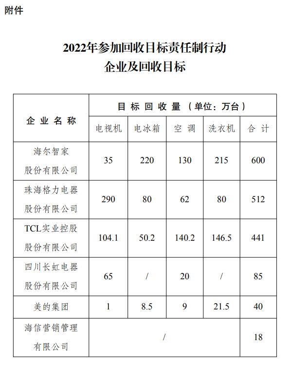國家發(fā)展改革委辦公廳 工業(yè)和信息化部辦公廳生態(tài)環(huán)境部辦公廳關(guān)于做好2022年家電生產(chǎn)企業(yè)回收目標責任制行動有關(guān)工作的通知發(fā)改辦產(chǎn)業(yè)〔2022〕424號 各省、自治區(qū)、直轄市及計劃單列市、新疆生產(chǎn)建設(shè)兵團發(fā)展改革委、工業(yè)和信息化主管部門、生態(tài)環(huán)境廳(局): 為暢通和優(yōu)化家電生產(chǎn)流通消費和回收利用渠道,...
