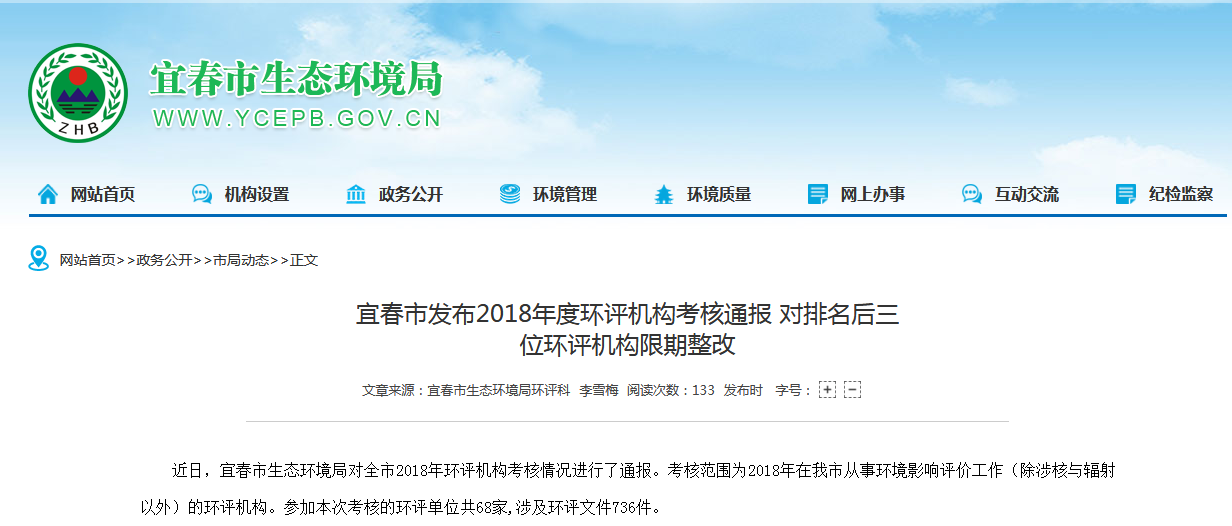 近日,宜春市生態(tài)環(huán)境局對(duì)全市2018年環(huán)評(píng)機(jī)構(gòu)考核情況進(jìn)行了通報(bào)??己朔秶鸀?018年在我市從事環(huán)境影響評(píng)價(jià)工作(除涉核與輻射以外)的環(huán)評(píng)機(jī)構(gòu)。參加本次考核的環(huán)評(píng)單位共68家,涉及環(huán)評(píng)文件736件??己朔秩粘?己撕蛯?zhuān)家技術(shù)復(fù)核兩部分。從日??己饲闆r看,我市環(huán)評(píng)文件的編制基本符合國(guó)家有關(guān)法律法規(guī)和環(huán)境...