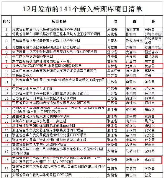 財政部PPP中心發(fā)布2018年12月141個新入管理庫項目清單,涉及近70個環(huán)保項目。這些都是誰家的項目呢?歡迎留言告訴我們,清單詳情如下:相關閱讀:薛濤:什么才是真PPP?薛濤:如何做好PPP?