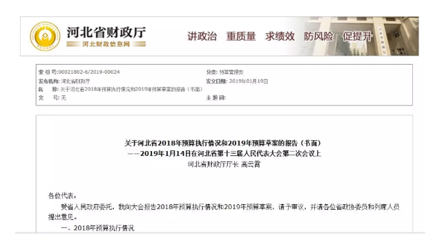 來自河北省財(cái)政廳的公開消息稱,河北省將投入140.4億元強(qiáng)化生態(tài)治理,同比增長41%,為歷年最多。 《關(guān)于河北省2018年預(yù)算執(zhí)行情況和2019年預(yù)算草案的報(bào)告(書面)》(以下簡稱《報(bào)告》)強(qiáng)調(diào)要強(qiáng)化生態(tài)治理。擬安排140.4億元,增長41.8%。其中:大氣污染防治82.3億元,重點(diǎn)用于農(nóng)村清潔取暖...
