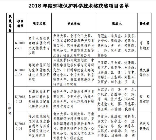 根據(jù)《環(huán)境保護(hù)科學(xué)技術(shù)獎(jiǎng)勵(lì)辦法》的規(guī)定,經(jīng)有關(guān)專家、單位提名和專家評(píng)審,并通過(guò)廣泛公示,環(huán)境保護(hù)科學(xué)技術(shù)獎(jiǎng)勵(lì)委員會(huì)批準(zhǔn)37個(gè)環(huán)保項(xiàng)目獲2018年度環(huán)境保護(hù)科學(xué)技術(shù)獎(jiǎng),其中:一等獎(jiǎng)6項(xiàng),二等獎(jiǎng)29項(xiàng),科普類獎(jiǎng)2項(xiàng)。附:2018年度環(huán)境保護(hù)科學(xué)技術(shù)獎(jiǎng)獲獎(jiǎng)項(xiàng)目名單環(huán)境保護(hù)科學(xué)技術(shù)獎(jiǎng)勵(lì)辦公室2019年1月9...
