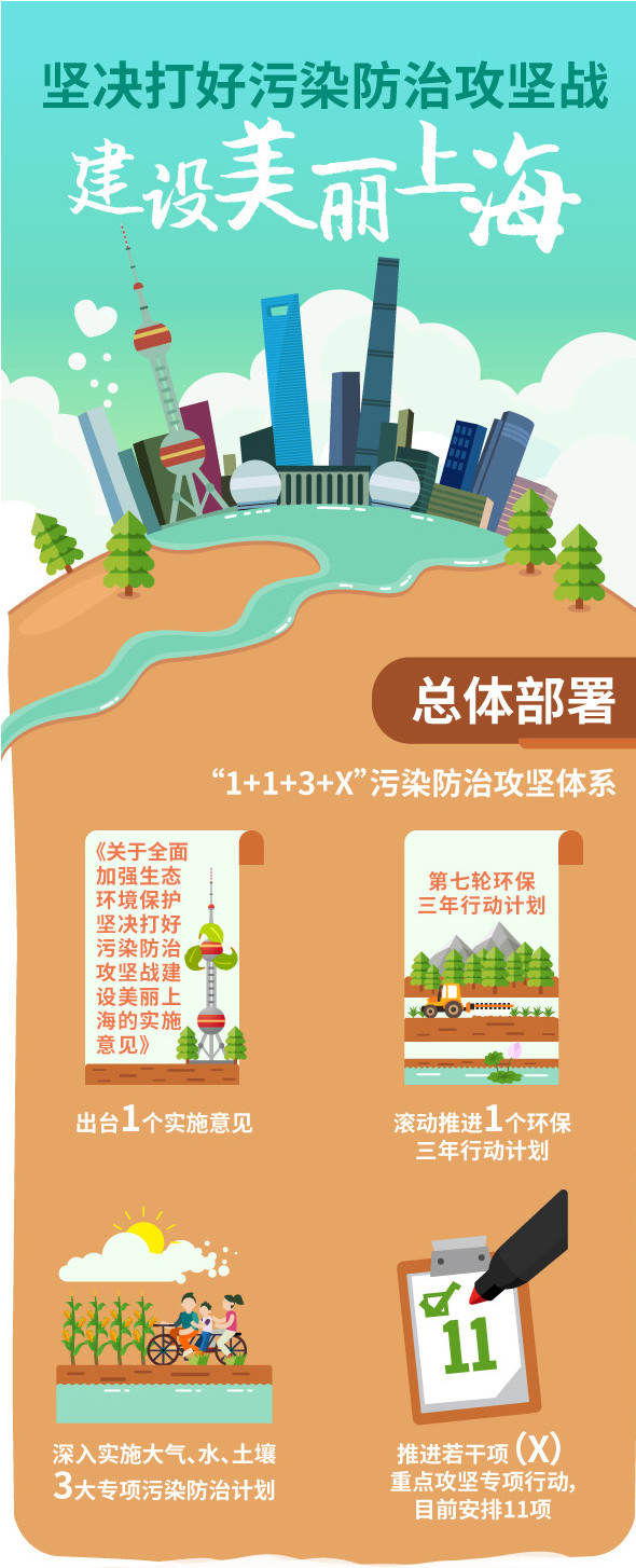 為貫徹落實(shí)習(xí)近平生態(tài)文明思想和全國(guó)生態(tài)環(huán)境保護(hù)大會(huì)精神,堅(jiān)決打好污染防治攻堅(jiān)戰(zhàn),市委、市政府按照“1+1+3+X”體系對(duì)本市污染防治攻堅(jiān)進(jìn)行了全面部署。第一個(gè)“1”是指制定1個(gè)總綱,即印發(fā)《中共上海市委上海市人民政府關(guān)于全面加強(qiáng)生態(tài)環(huán)境保護(hù)堅(jiān)決打好污染防治攻堅(jiān)戰(zhàn)建設(shè)美麗上海的實(shí)施意見(jiàn)》;第二個(gè)“1”...