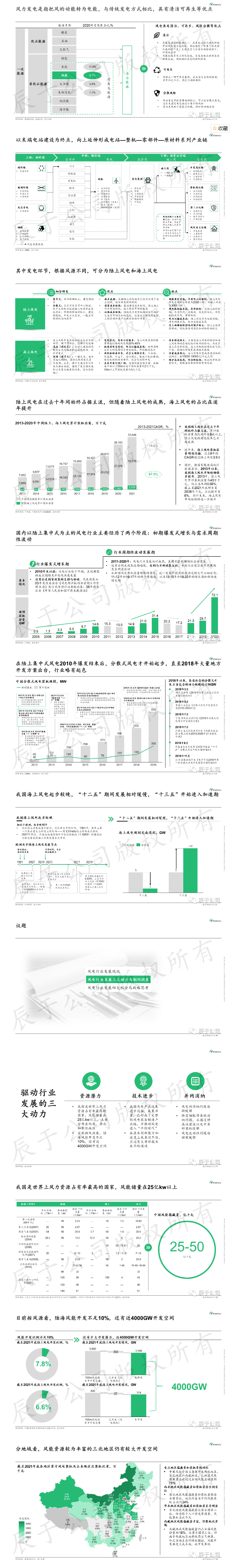 導(dǎo)讀 正如辰于咨詢此前分析的,我國是世界上風力資源最為豐富的國家,風能儲量25-50億kw。歷經(jīng)2005-2010年的爆發(fā)性增長和2011-2020年的周期性波動發(fā)展之后,我國已經(jīng)形成了較為完整的風電產(chǎn)業(yè)發(fā)展鏈,在上游原材料、中游零部件和整機生產(chǎn)制造、以及下游電站的投資建設(shè)運營等各環(huán)節(jié),積累了一大批...