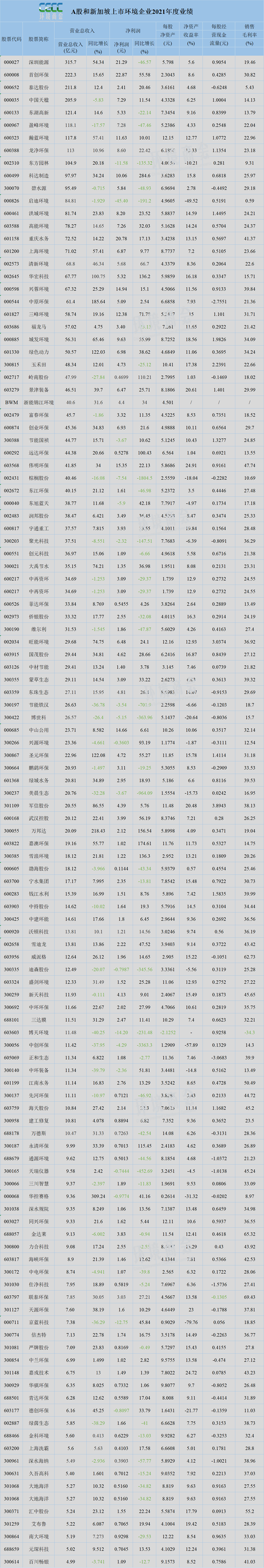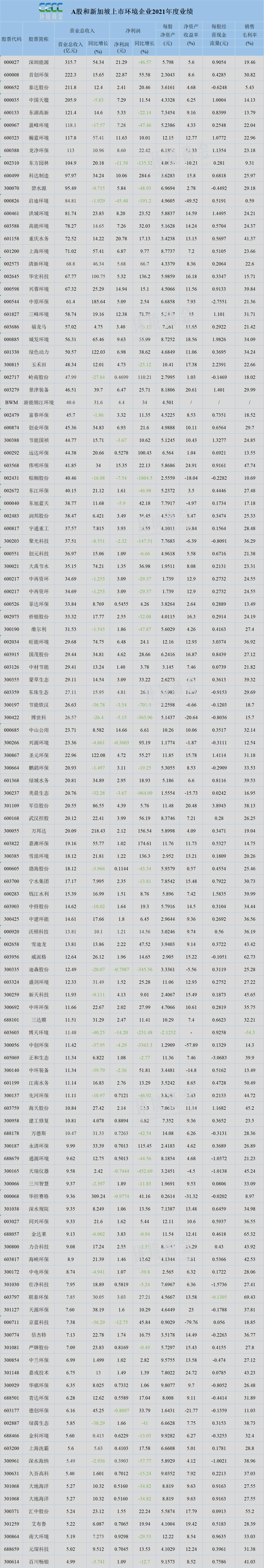關(guān)注 | 176家環(huán)境企業(yè)2021年業(yè)績(jī)匯總