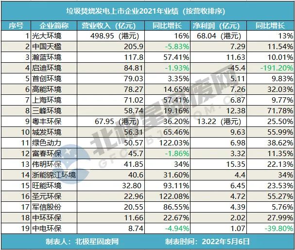 年度盤點(diǎn) | 19家垃圾焚燒發(fā)電上市企業(yè)2021年業(yè)績(jī)匯總