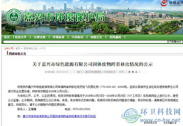 近日,環(huán)衛(wèi)科技網(wǎng)報(bào)道了浙江嘉興市綠色能源有限公司申請(qǐng)跨省轉(zhuǎn)移1萬噸垃圾焚燒飛灰固化物至四川省敘永縣處理的事件,引發(fā)廣泛關(guān)注。 萬噸危險(xiǎn)廢棄物跨省轉(zhuǎn)移 10月23日,嘉興市環(huán)境保護(hù)局發(fā)布《關(guān)于嘉興市綠色能源有限公司固體廢物跨省移出情況的公示》,公示中顯示,嘉興市綠色能源有限公司申請(qǐng)跨省轉(zhuǎn)移垃圾焚燒飛灰...
