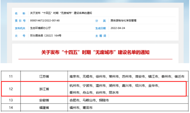 “無(wú)廢城市”是以新發(fā)展理念為引領(lǐng),通過(guò)推動(dòng)形成綠色發(fā)展方式和生活方式,持續(xù)推進(jìn)固體廢物源頭減量和資源化利用,最大限度減少填埋量,將固體廢物環(huán)境影響降至最低的城市發(fā)展模式。近日,生態(tài)環(huán)境部辦公廳公布“十四五”時(shí)期“無(wú)廢城市”建設(shè)名...