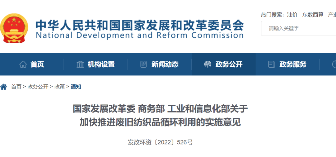 政策 | 發(fā)改委等部門:加快推進(jìn)廢舊紡織品循環(huán)利用