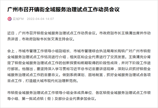 重磅!廣州探索超大鎮(zhèn)街全域服務(wù)治理模式!首批18個(gè)鎮(zhèn)街試點(diǎn)企業(yè)當(dāng)“大管家”!