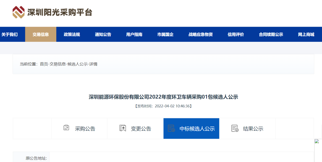 4月2日,深圳陽光采購平臺發(fā)布深圳能源環(huán)保股份有限公司2022年度環(huán)衛(wèi)車輛采購候選人公示,福龍馬和盈峰環(huán)境子公司長沙中聯(lián)環(huán)境預(yù)中標該項目兩個標包,合計中標金額達3.17億元。 ● 深圳能源環(huán)保股份有限公司2022年度環(huán)衛(wèi)車輛采購01包 編號:221GA0209495/01 中標候選人:福龍馬集團股份...