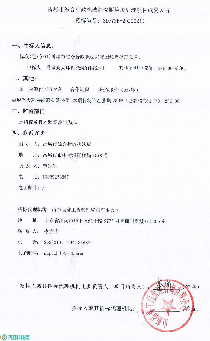 4月3日,中國招標投標公共服務(wù)平臺發(fā)布山東省禹城市綜合行政執(zhí)法局餐廚垃圾處理項目成交公告,該項目由禹城光大環(huán)保能源有限公司拿下,中標單價為286元/噸,特許經(jīng)營期28年(含1年建設(shè)期)。 企查查顯示,禹城光大環(huán)保能源有限公司成立于2019年3月25日,實際控股人為光大環(huán)保能源(山東)控股有限公司,所...