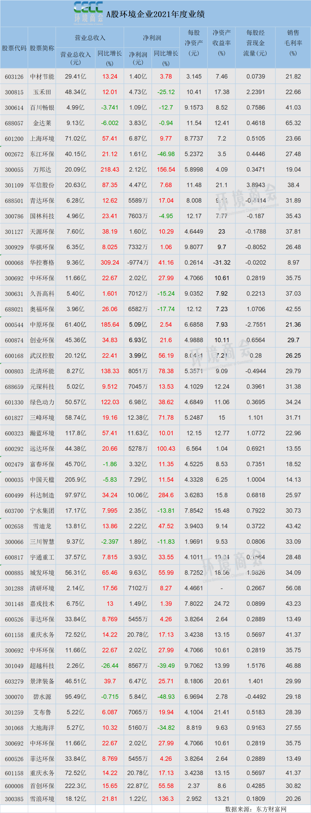 又一年業(yè)績披露季,近來環(huán)境企業(yè)在陸續(xù)曬2021年成績單,有喜有憂。本文進行了不完全統(tǒng)計,供業(yè)界參考。 來源 | 全聯(lián)環(huán)境商會